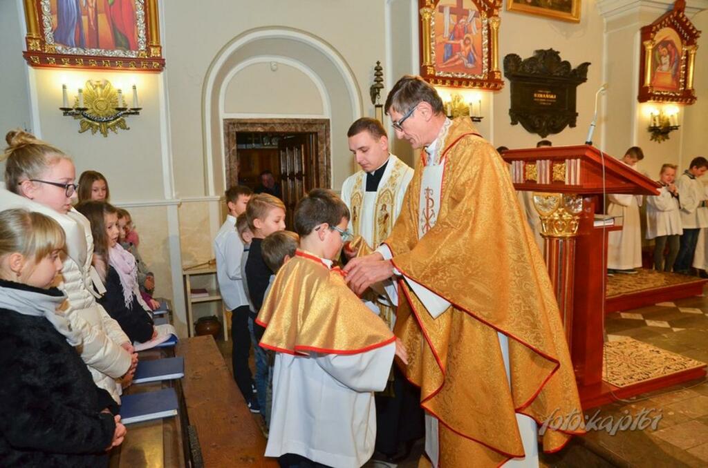 W Uroczystość Jezusa Chrystusa Króla Wszechświata na Mszy św. o godz. 11.30 do grona ministrantów zostało włączonych nowych 10 chłopaków przez posługę ks. Proboszcza. Oto nowi ministranci: Szymon Baranowski, Daniel Oleś, Krystian Jawor, Adam Rol, Mateusz Suchecki, Jakub Czech, Szymon Duda, Franciszek Fiedler, Mateusz Galica, Michał Sichelski. Gratulujemy i cieszymy się nowymi zastępami służących Bogu przy Jego ołtarzu, przy najważniejszych sprawach naszego życia ludzkiego.